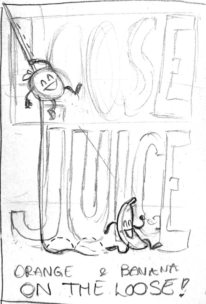We were briefed to do an illustration for fruit juice packaging, for the made-up product: Loose Juice.