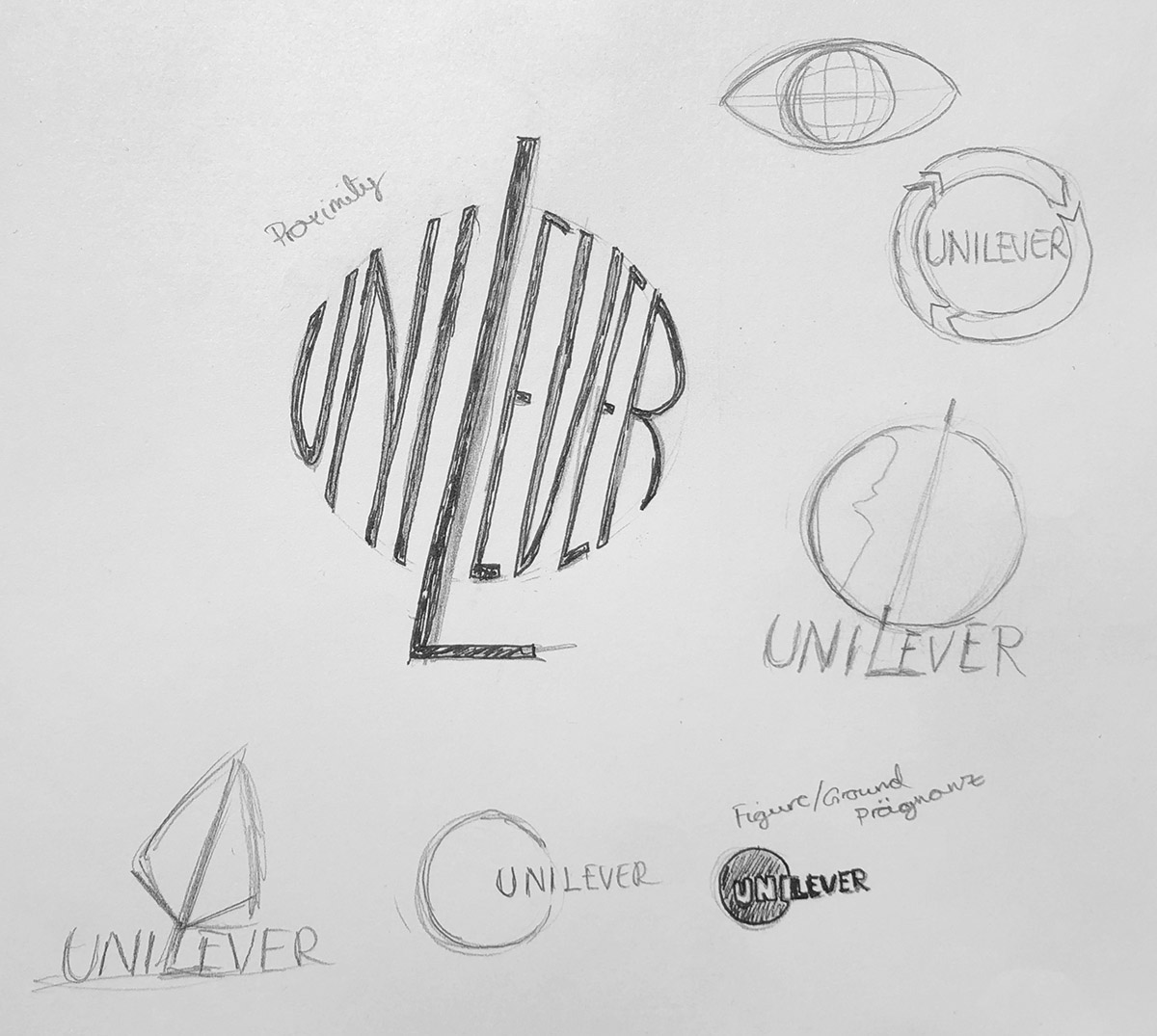 The final task of this Learning Activity is to recreate three versions of the Unilever logo, using the Gestalt Principles, I will also show my sketches that led to the final logos. I chose, Similarity, Continuation and Closure, but ended up using more principles in each of them.