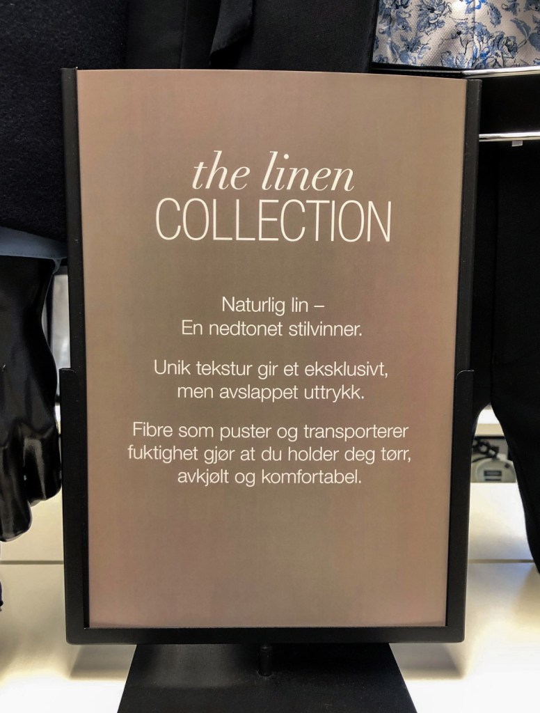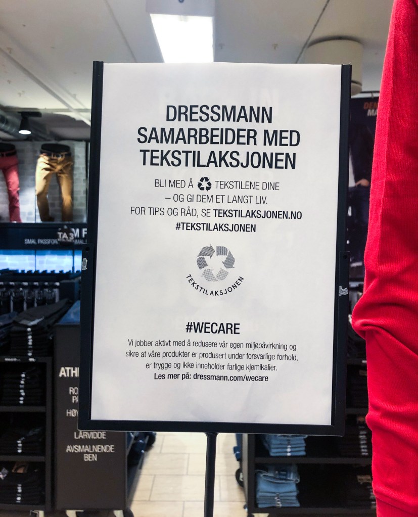Sustainability might be the ideal that is the least represented in the physical store that I visited, but it’s pretty detailed on their webpages. However this sign was placed in the middle of the store, so it was almost impossible not to notice it. “Tekstilaksjonen” is just one of the measures under the #WECARE “mission”.