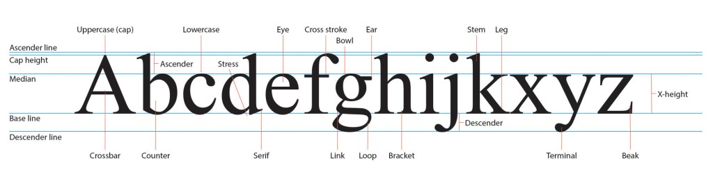 The second Learning Activity of this week was about explaining the anatomy of type, or how a typeface is put together.