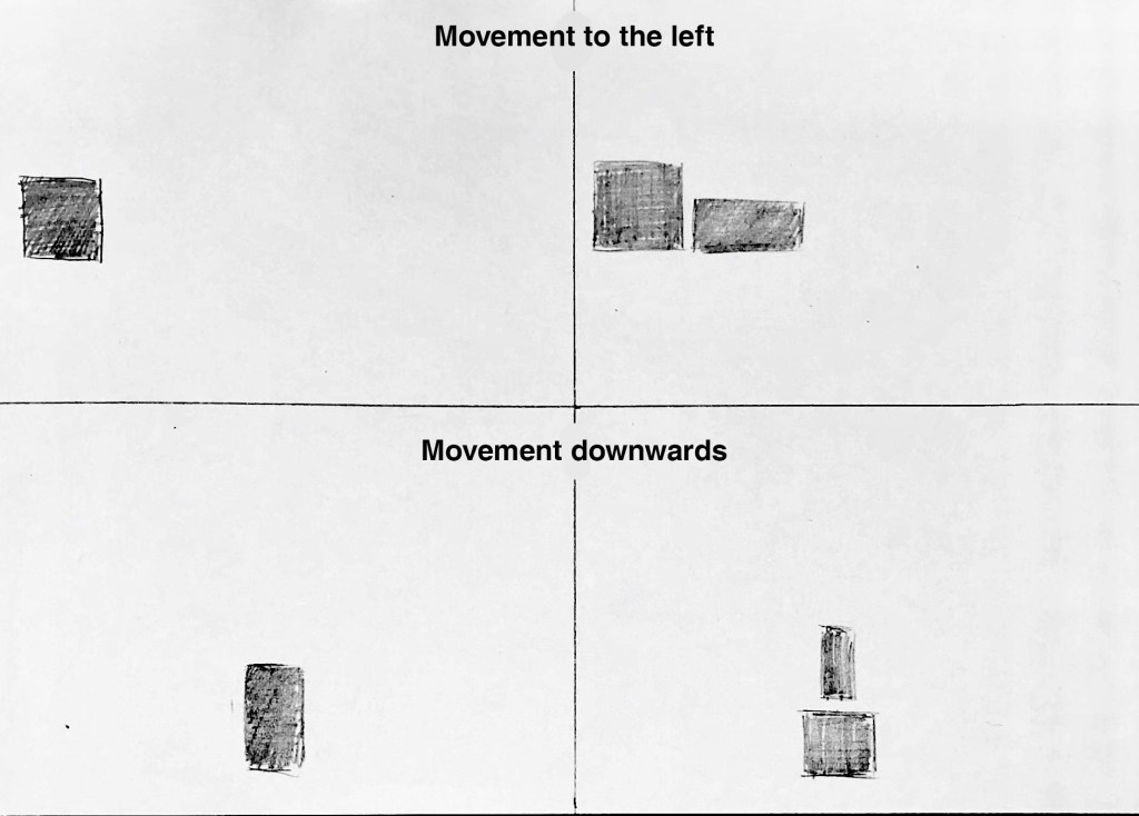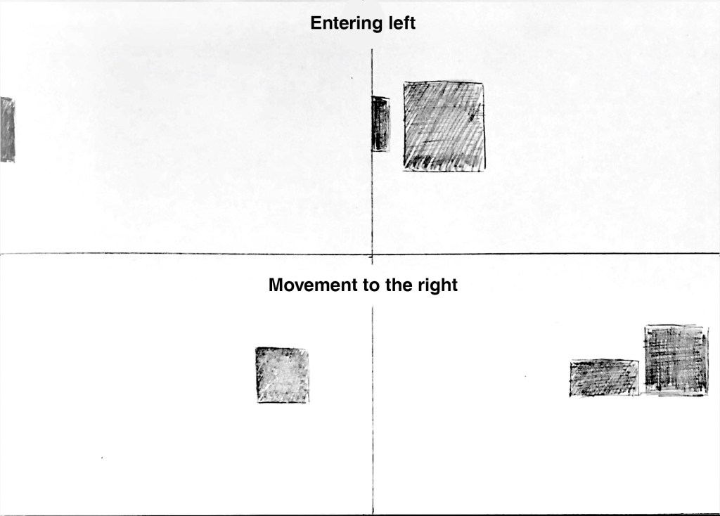 For movement to the right I just put the objects to the right in the frame, with the biggest square “leading” the way.